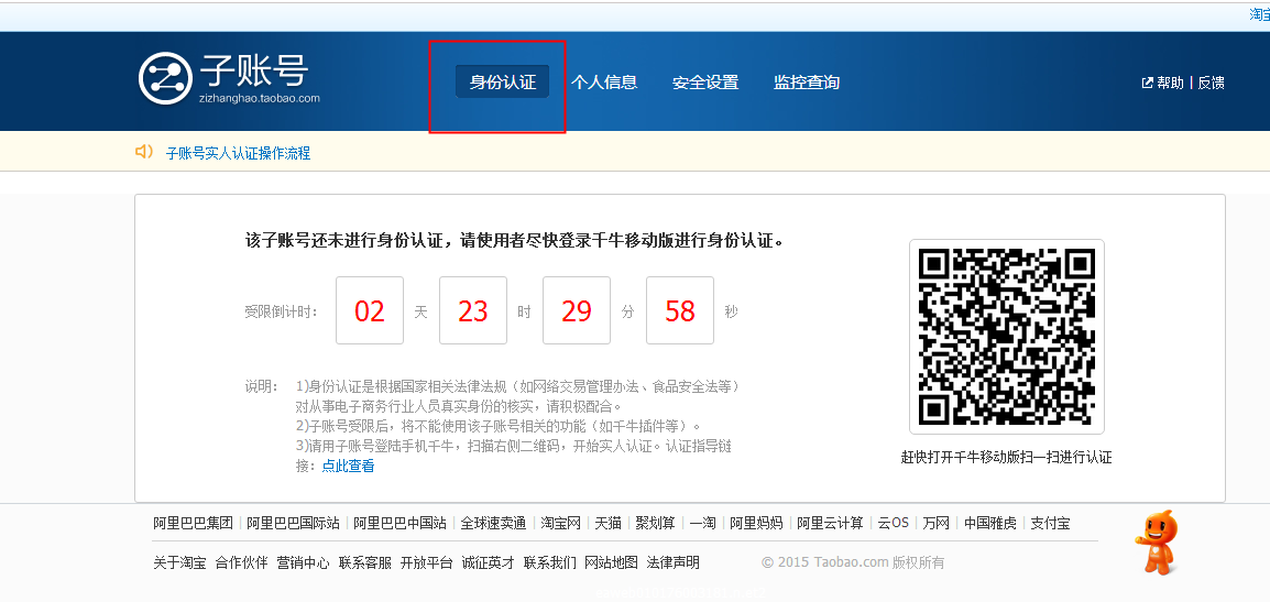 1.   子账号认证是子账号登陆手机千牛操作扫码认证